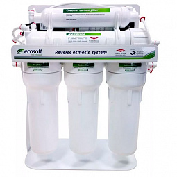Ecosoft Standart включает пять ступеней очистки: грубый механический фильтр, угольный сорбент, полипропиленовый фильтр, задерживающий микрочастицы, мембрану, постфильтр.